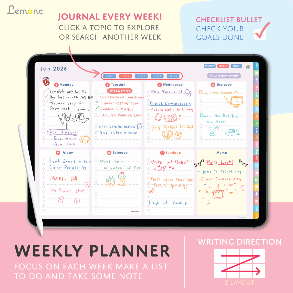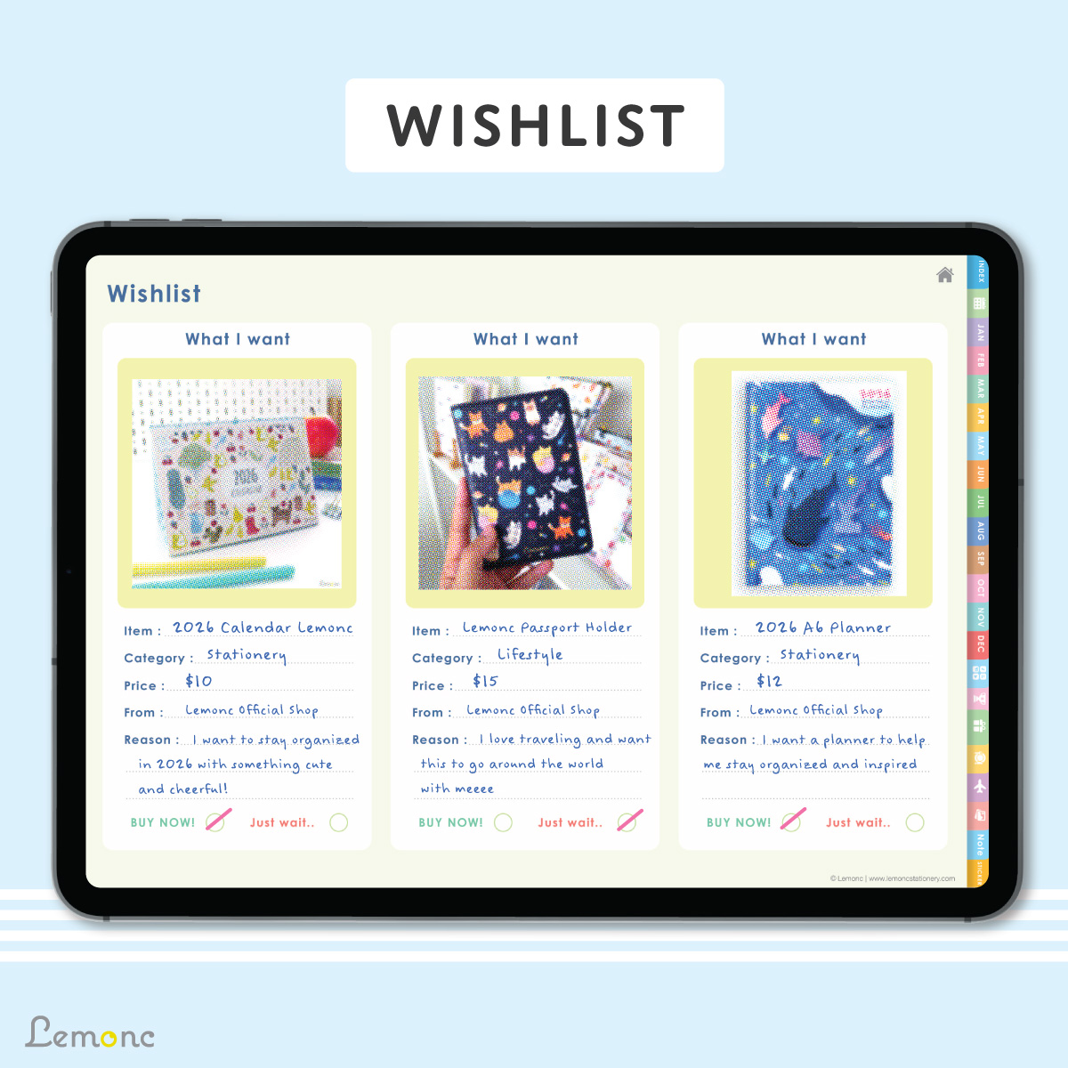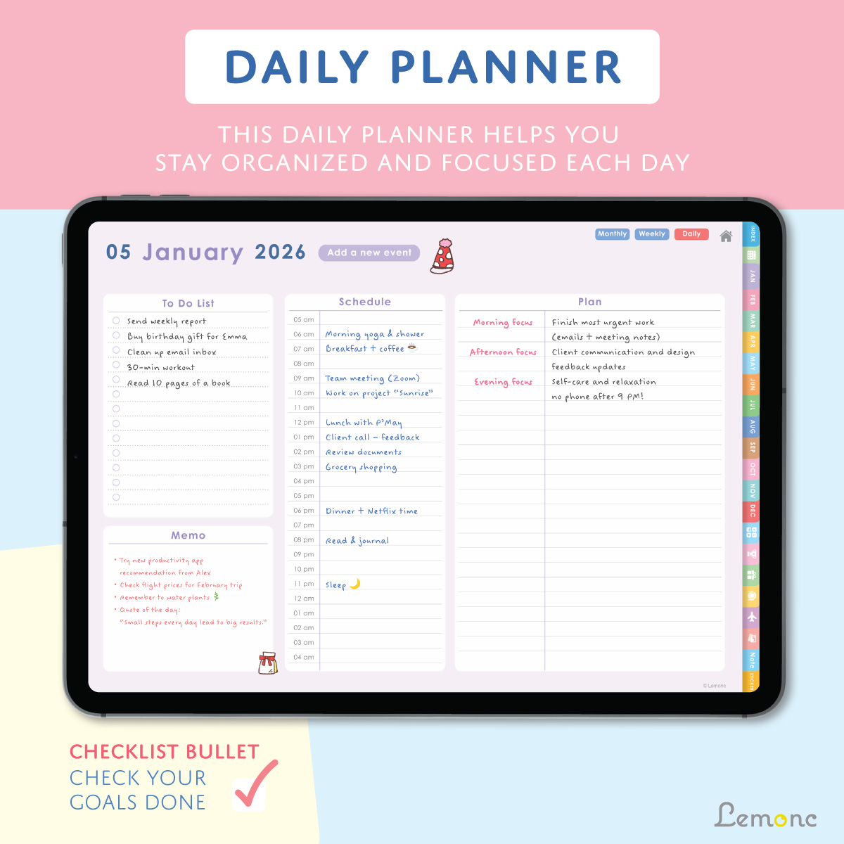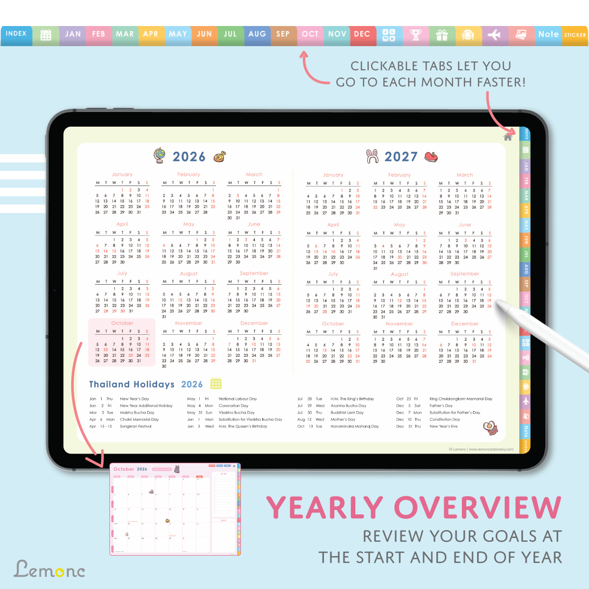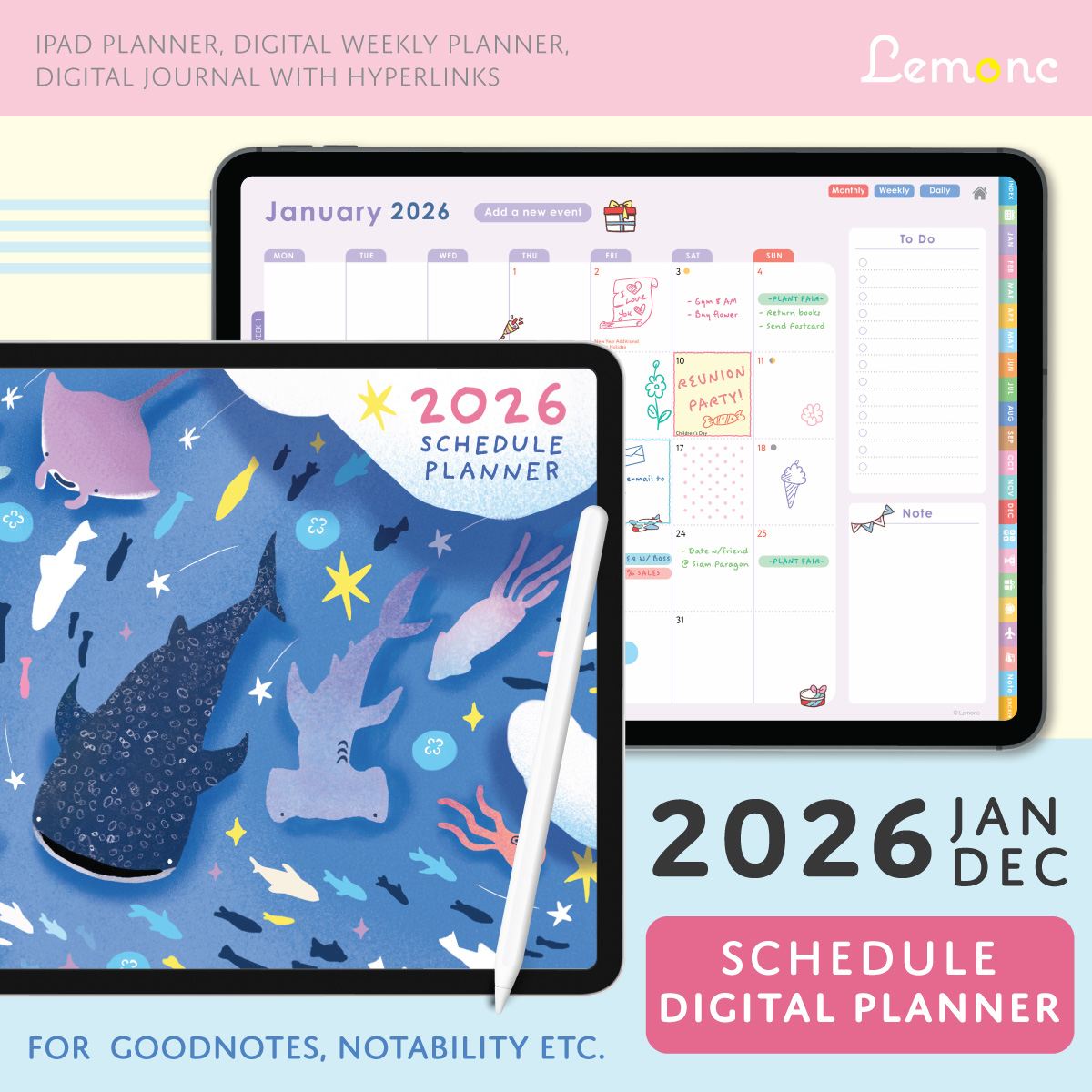 Lemonc – 2026 ดิจิทัลแพลนเนอร์ สำหรับ iPad (ใช้งานกับ Goodnotes ได้)