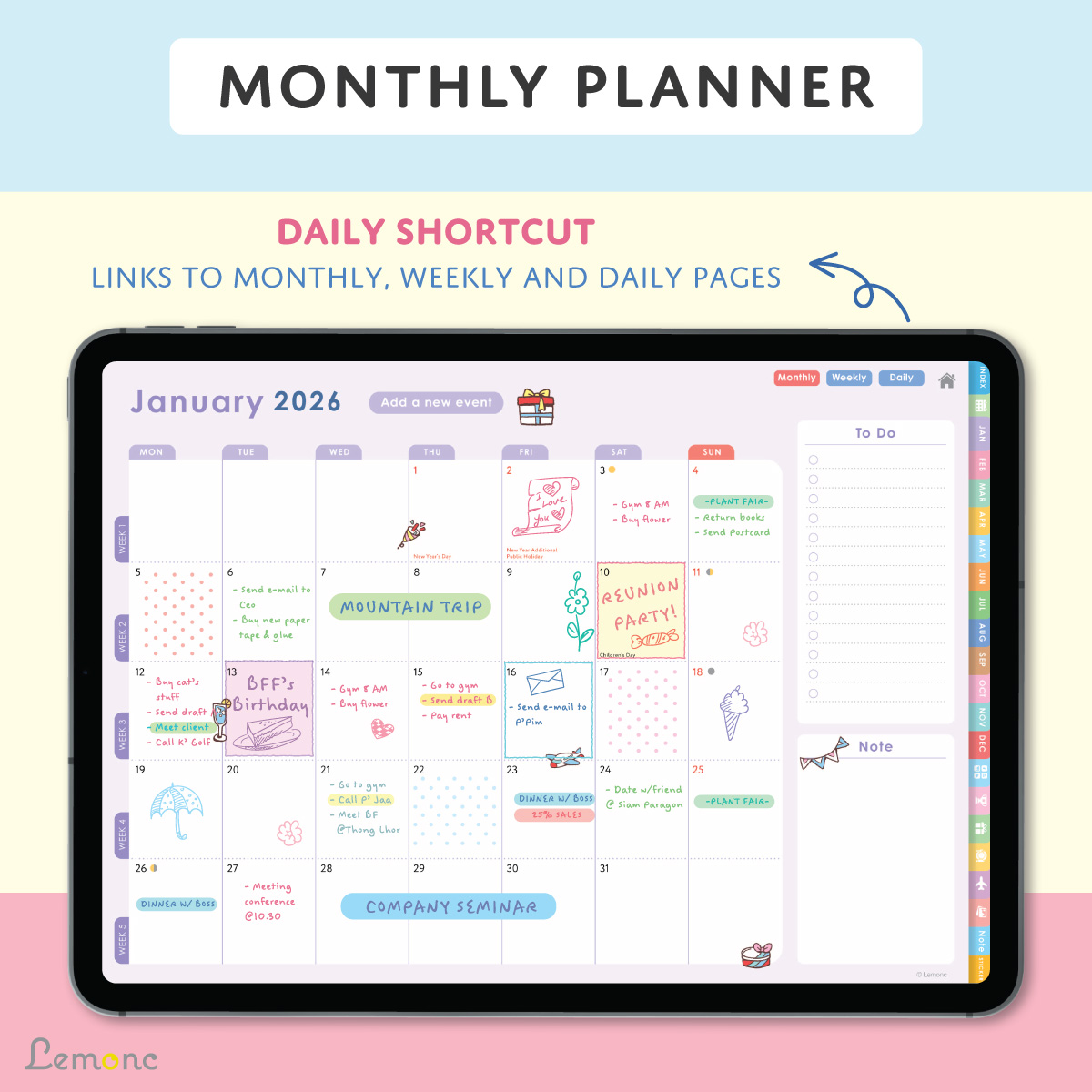 วางแผนปี 2026 ของคุณให้ดีที่สุดไปกับ Lemonc 2026 Digital Planner ดิจิทัลแพลนเนอร์ดีไซน์ครบฟังก์ชัน ที่ผสานความน่ารักและความเรียบง่ายไว้ในเล่มเดียว